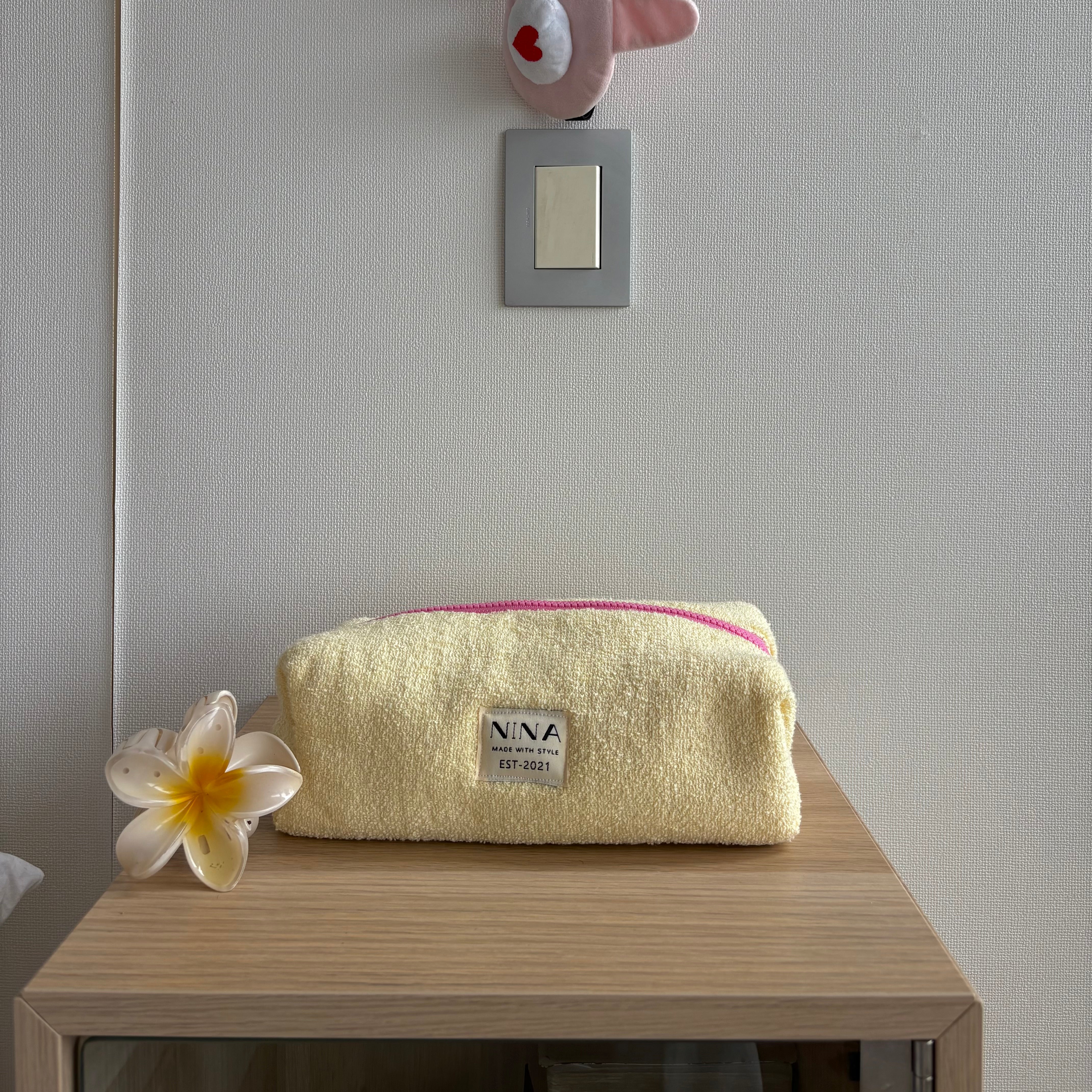 Esta clásica cosmetiquera se destaca por su distintiva textura de toalla amarilla, resaltando con su zíper en tono rosado fuerte con un diseño muy elegante y cute al mismo tiempo, un tamaño grande perfecto para llevar contigo todos tus necesarios a todos lados, de una manera mas linda.MaterialTela de algodón estilo toalla en tono amarillo suave, ziper tono rosado fuerte de plástico doble, con deslizante de hierro. Medidas29 cm de largo, 15 cm de ancho y 7 cm de alto Nos basamos en el largo del zíper, las medidas pueden variar entre 1 y 2 cm de diferencia.